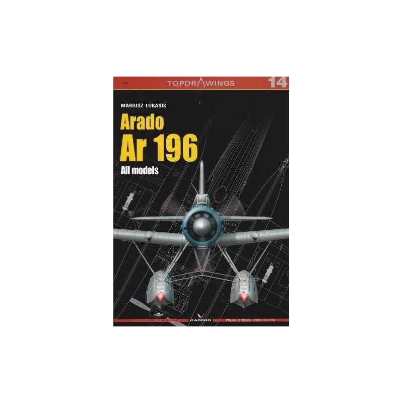 The 14th volume of the Topdrawings series is focused on the Arado Ar 196, German shipboard reconnaissance float plane. The 20 page, A4 size booklet contains 10 sheets of 1:48 scale drawings, 5 sheets of 1:72 scale drawings (which include a specification of external changes in various versions of the aircraft) and colour profiles of 4 planes, all with English and Polish captions. The drawings in 1:32 scale and top & underside views in 1:48 scale are printed on both sides of 2 folded A2 size sheets, which are attached to the publication. The drawings show the panel lines and rivet lines on the airframe. Also included are 2 decal sheets printed by Cartograf, which contain 1:32 scale individual cockpit instrument dials: 1:48 and 1:72 scale cockpit instrument panels as well as 1:32, 1:48 and 1:72 scale individual markings for the following machines depicted on colour profiles:
